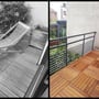 Quoi de plus frustrant que de voir son jardin depuis le Séjour et de ne pas pouvoir y accéder sans passer par le Garage du sous-sol. Nous avons établi une rénovation de la terrasse arrière en refaisant une étanchéité avec protection dalle sur plots en bois et en créant un escalier et créer la liaison.