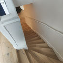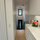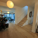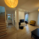 Au niveau 0, une entrée basse et haute permettant une circulation fluide et ouverte vers l'extérieur. de grandes baies vitrées permettent un éclairement maximal et une échappée visuelle vers le jardin paysagé. Les espaces bien que très ouverts permettent par le jeu d'un zoning étudié de garder une intimité dans chaque pièce.