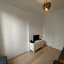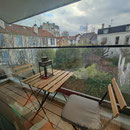-Un volume secondaire plus bas, long et étroit, couvert par une toiture terrasse végétalisée et implanté en limite Nord, accolé en partie au bâtiment tiers voisin. Ce volume, que l’on peut lire comme « annexe », est implanté en retrait de la façade principale afin de laisser à cette dernière toute son importance et hiérarchiser l’antériorité des constructions.