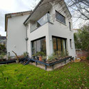 L’extension a tout naturellement trouvé sa place à l’arrière de la parcelle accolée à la limite séparative Nord en favorisant l’exploitation du jardin dans sa partie la mieux exposée.