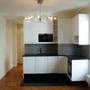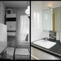 L'appartement originel de 3 pièces a été transformé en 2 pièces. L'inversion de la salle de bains avec la cuisine a permis d'ouvrir cette dernière sur le séjour pour offir une pièce de vie beaucoup plus spacieuse et gagner les surfaces de circulation.